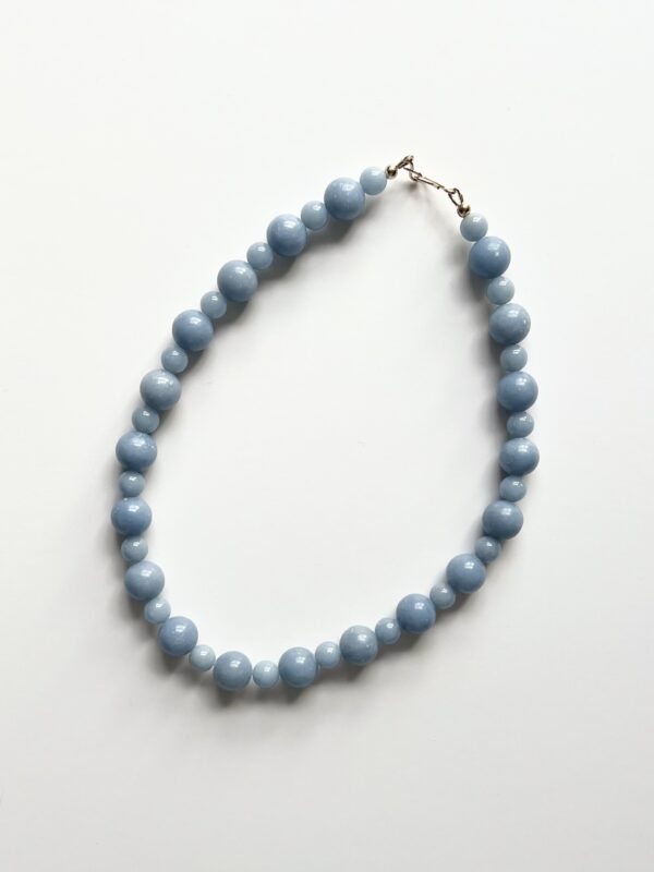 Blue Angelite semi-precious 12mm and 8mm mix bead necklace.