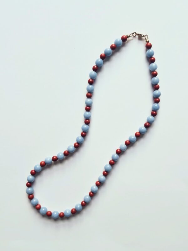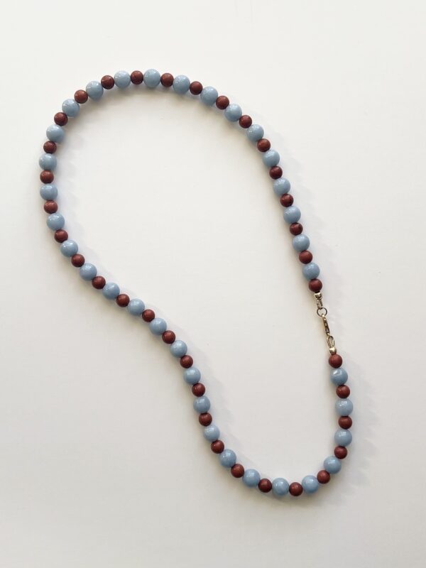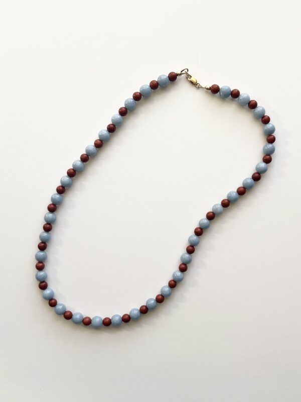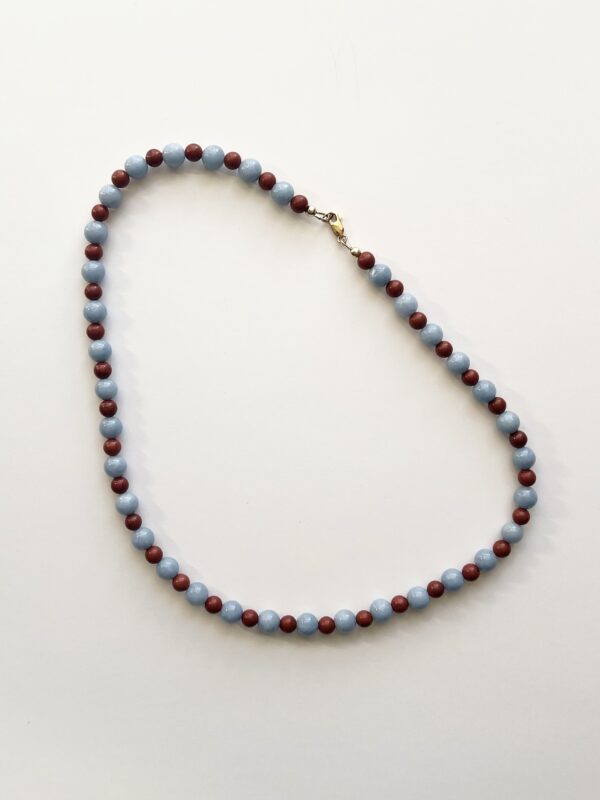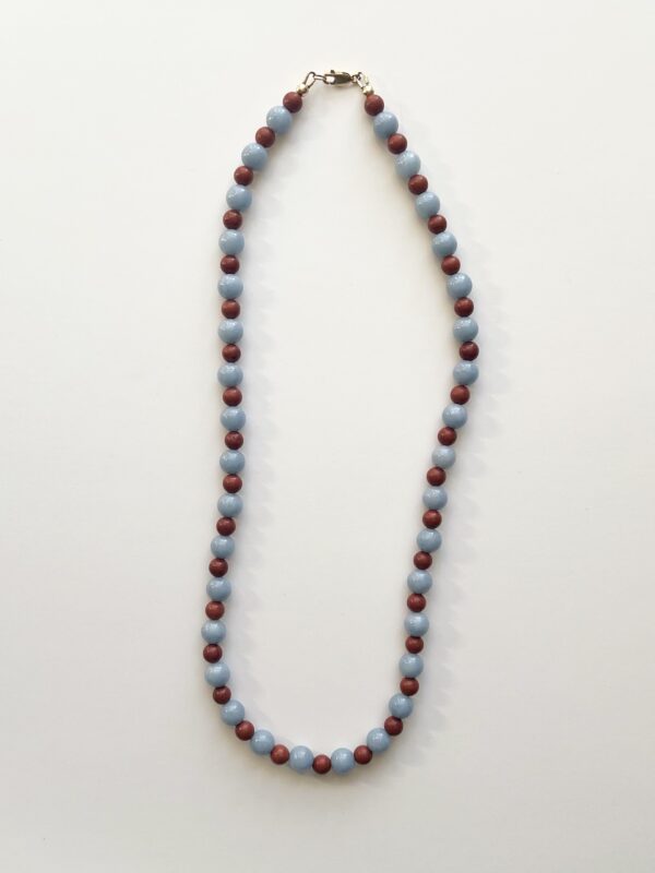 Blue Angelite and Red Jasper semi-precious bead necklace.