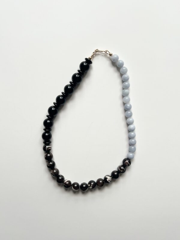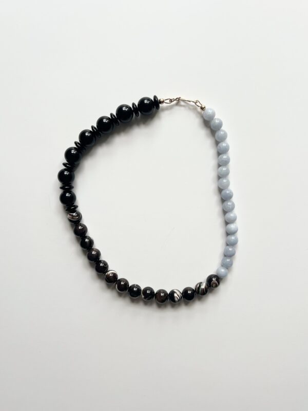 Aquamarine, Coffee Mother of Pearl and Black Onyx bead necklace.