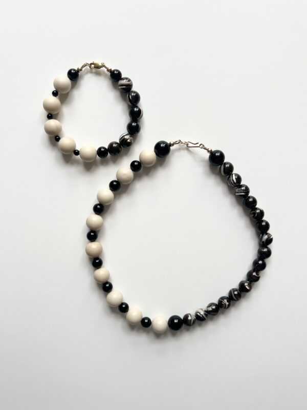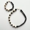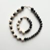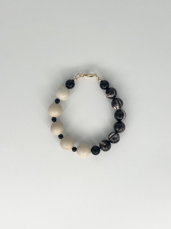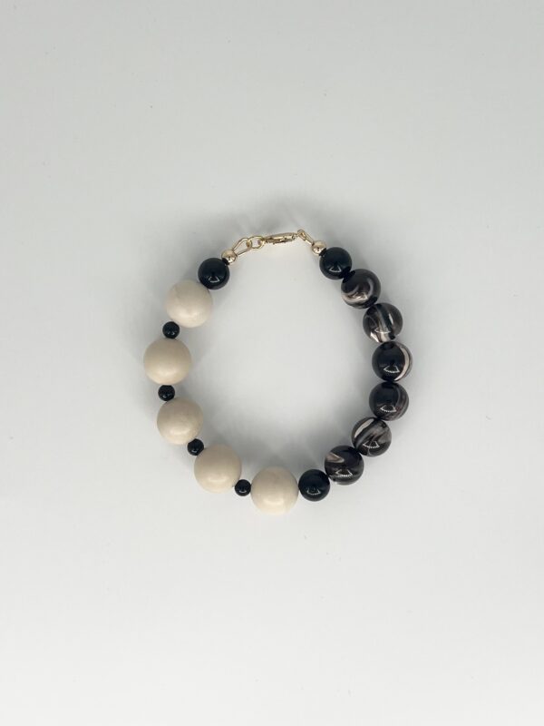 Ivory Jade, Coffee Mother of Pearl and Black Onyx bead bracelet.