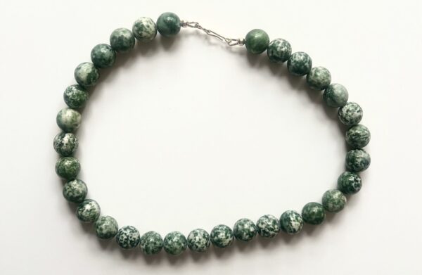 12mm bead Dalmatian Green Spot Jasper necklace.