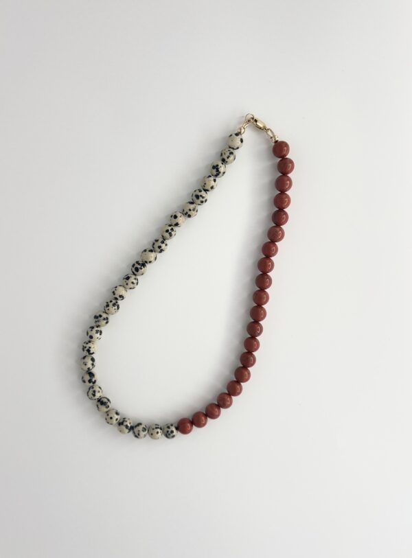 Dalmatian Jasper and Red Jasper semi-precious 8mm bead necklace.