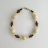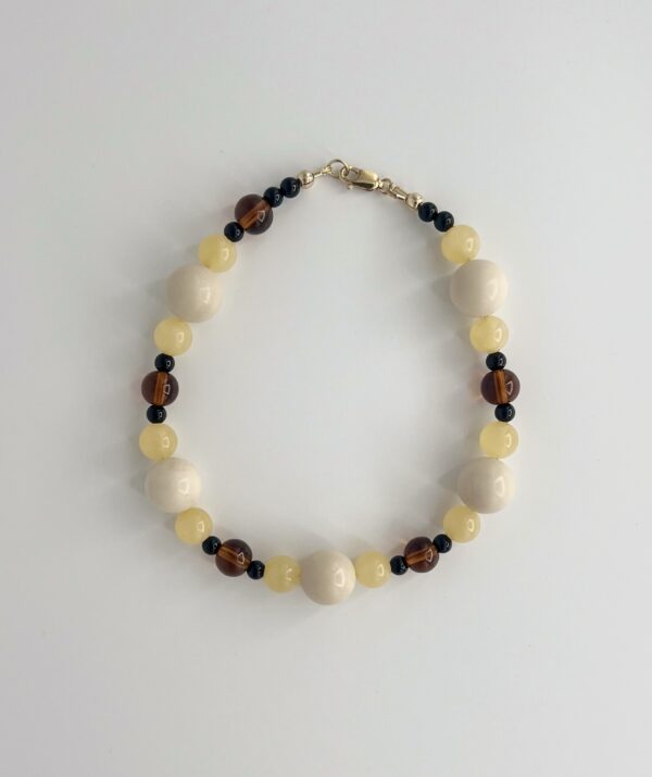 Yellow Honey Jade and brown glass 8mm beads along with 12mm Ivory Jade bead anklet with Black Onyx 4mm infill beads.