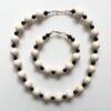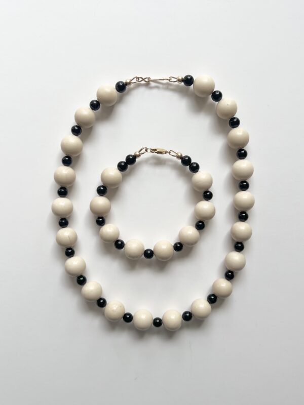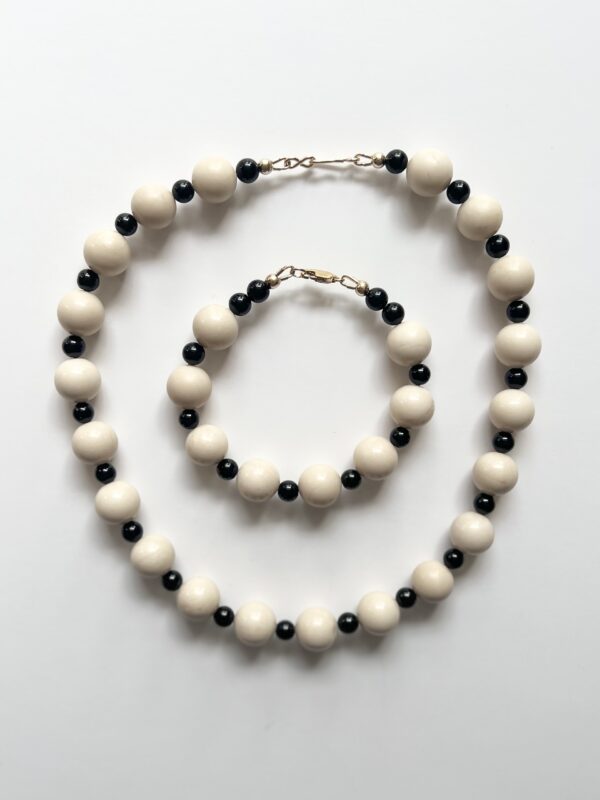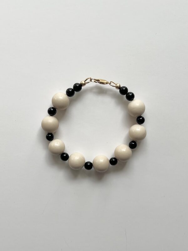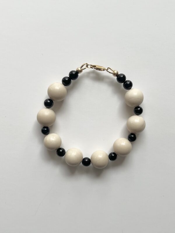 Ivory Jade and Black Onyx semi-precious bead bracelet.