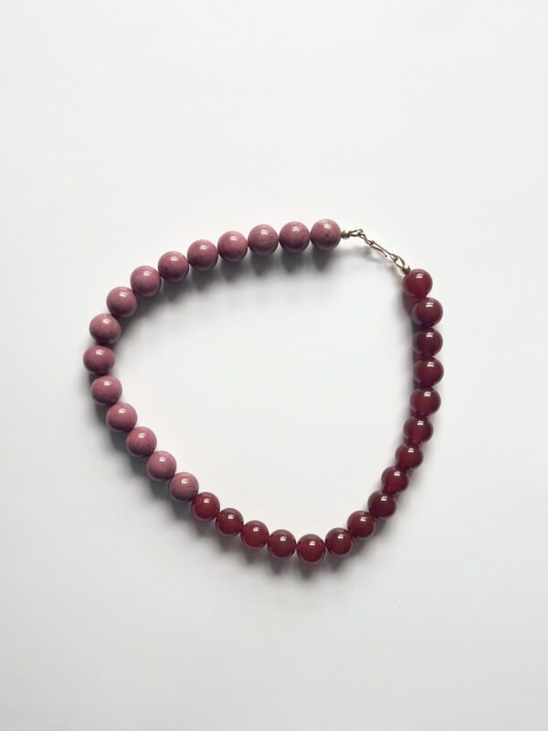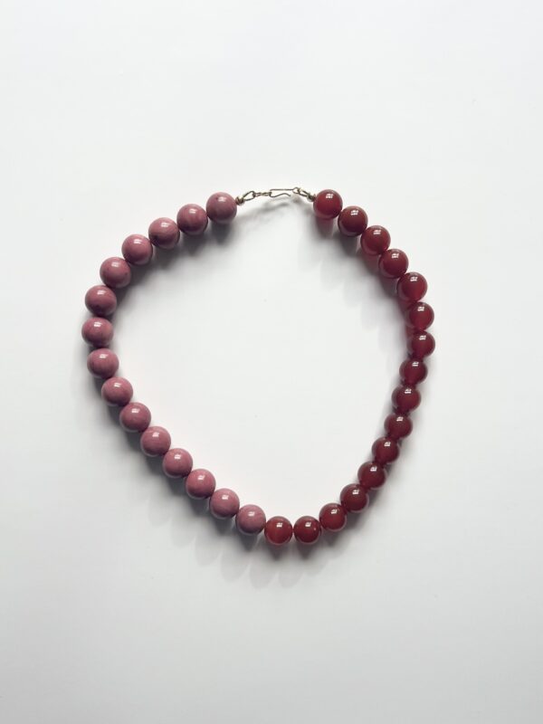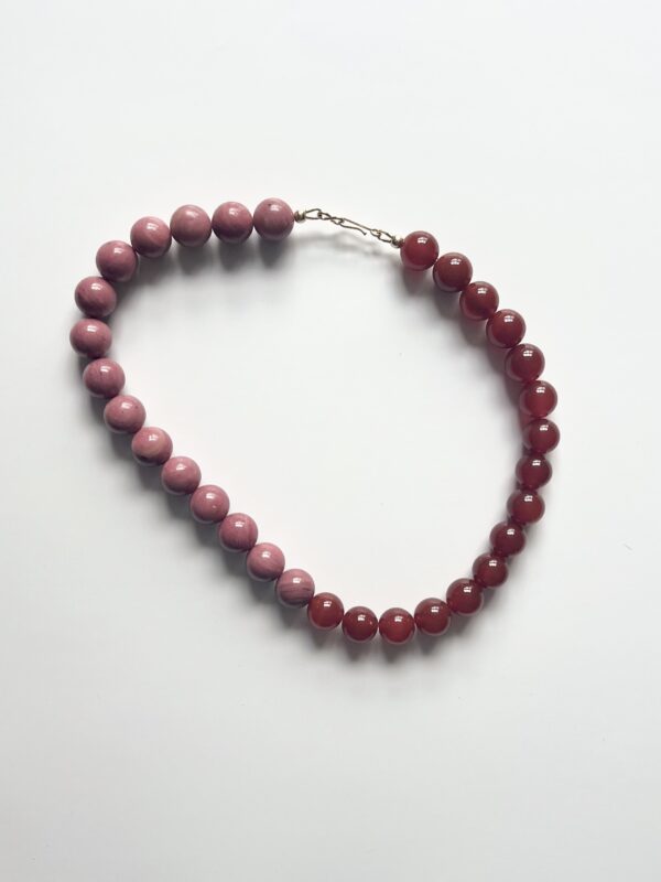 Pink Rhodonite and Red Carnelian 12mm bead collar necklace.